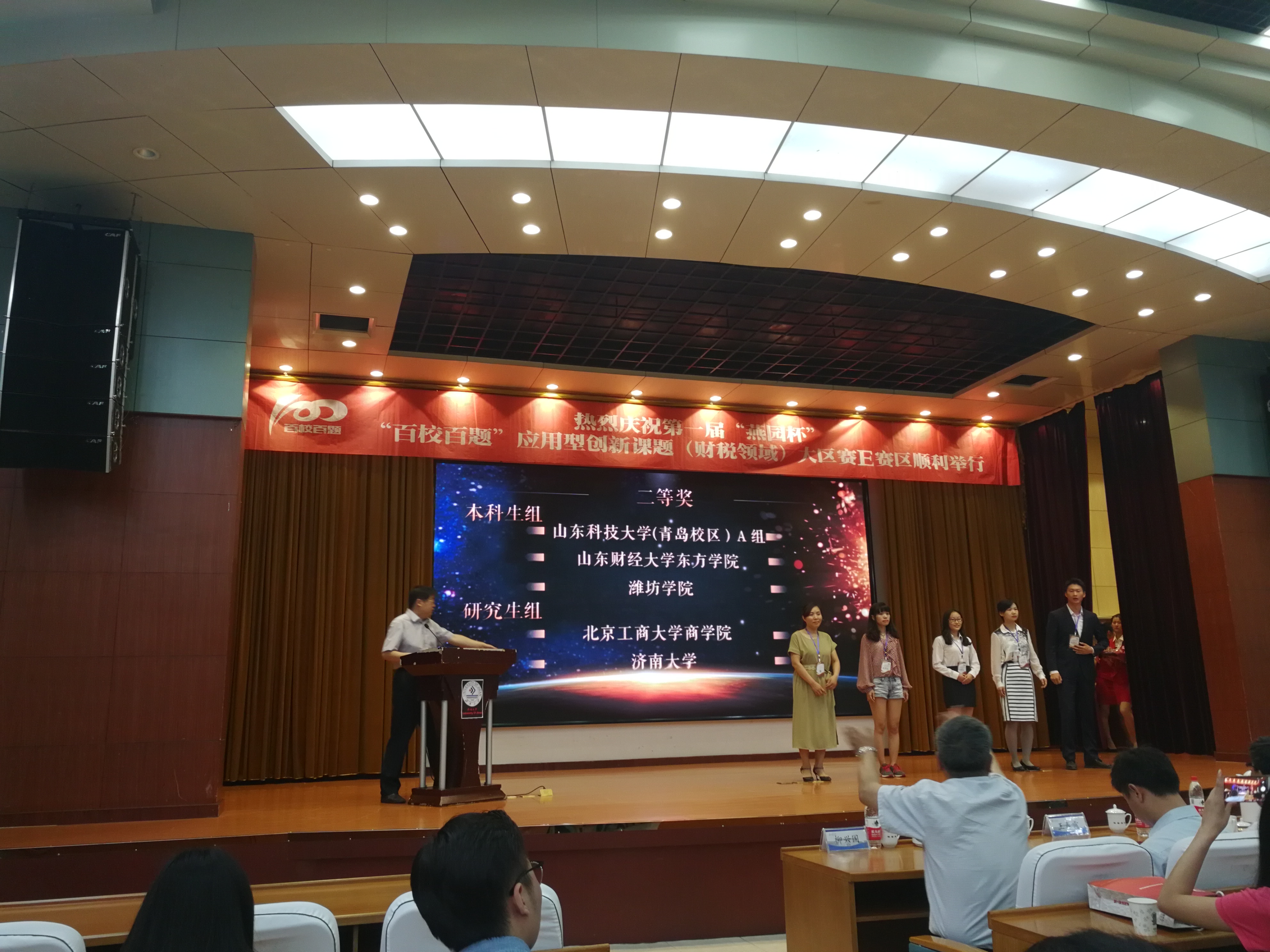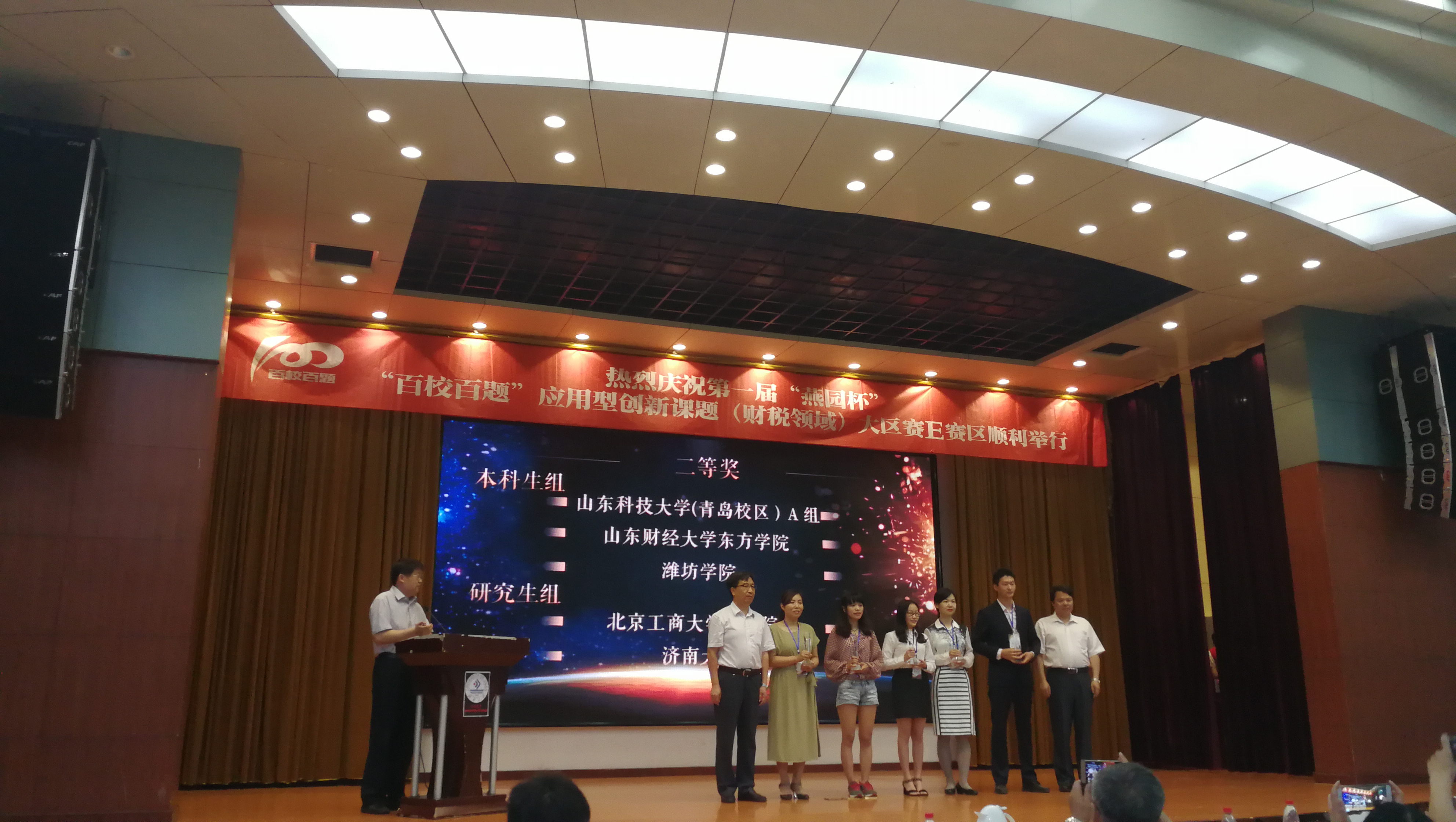 2017年6月1日至5日,由教育部学校规划建设发展中心主办,北京燕园智库管理咨询中心、半月谈杂志社承办的第一届“燕园杯”百校百题应用型创新课题(财税领域)大赛复赛(大区赛)在全国五个城市分别举行。6月2日,我院代表队参加了在济南举办的E区大区赛,并取得了二等奖的优异成绩,刘丹、黄雷老师获优秀指导教师称号。