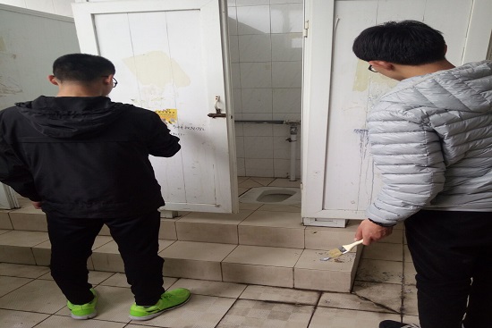 为了同学们能在整洁的环境里学习生活,2017年4月7日下午4点10分,经济管理学院学生会体育部部长赵奎林及女生部部长孙孟瑶带领部门干事于致远楼与天一楼开展了打扫厕所垃圾、清理小广告活动。