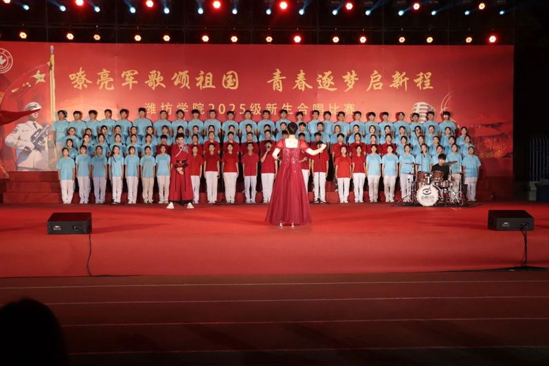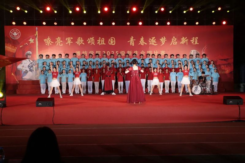 为了激发学生们的爱党爱国热情,展现潍院学子青春风貌,2025年9月23日,潍坊学院于体育场举行了“嘹亮军歌颂祖国,青春逐梦启新程”军训合唱比赛活动。经济管理学院2025级新生们积极参赛,用歌声与伴舞彰显青春担当。