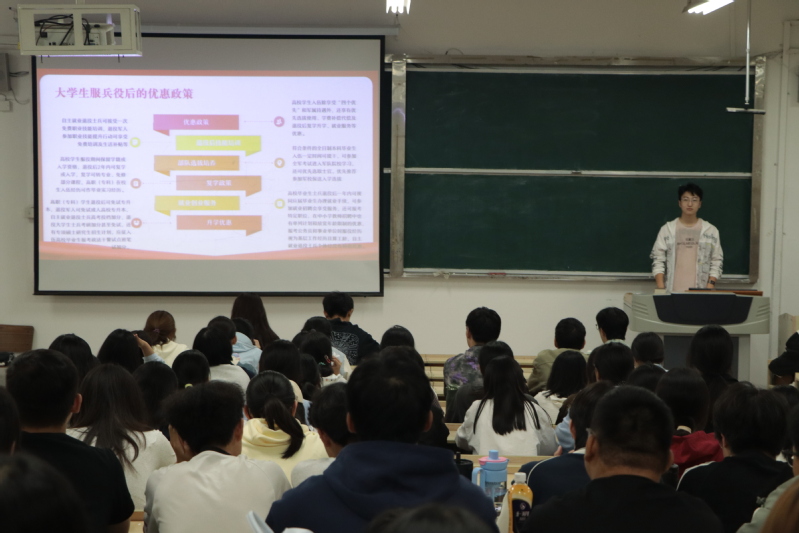 活动中,学生代表首先介绍全民国防教育日背景——2001 年8月31日,全国人大常委会依《中华人民共和国国防教育法》,将每年 9 月第三个星期六设为该节日,其旨在弘扬爱国主义,助力民众掌握国防知识与技能。同时强调,面对和平时期国防观念淡化现状,此活动为全民参与国防教育提供社会化载体,彰显国防教育的重要性。随后,学生代表讲解国防核心知识——国防是保卫国家主权、领土完整的综合举措,涵盖军事、政治等多领域,国家制定 20 多部法规保障防务。针对大学生,明确其需保守国家秘密、抵制危害国家安全行为,还详解《兵役法》中公民服兵役义务,以及大学生入伍的 “四个优先”、学费补偿、复学转专业、退役后升学免试、就业加分等优惠政策。