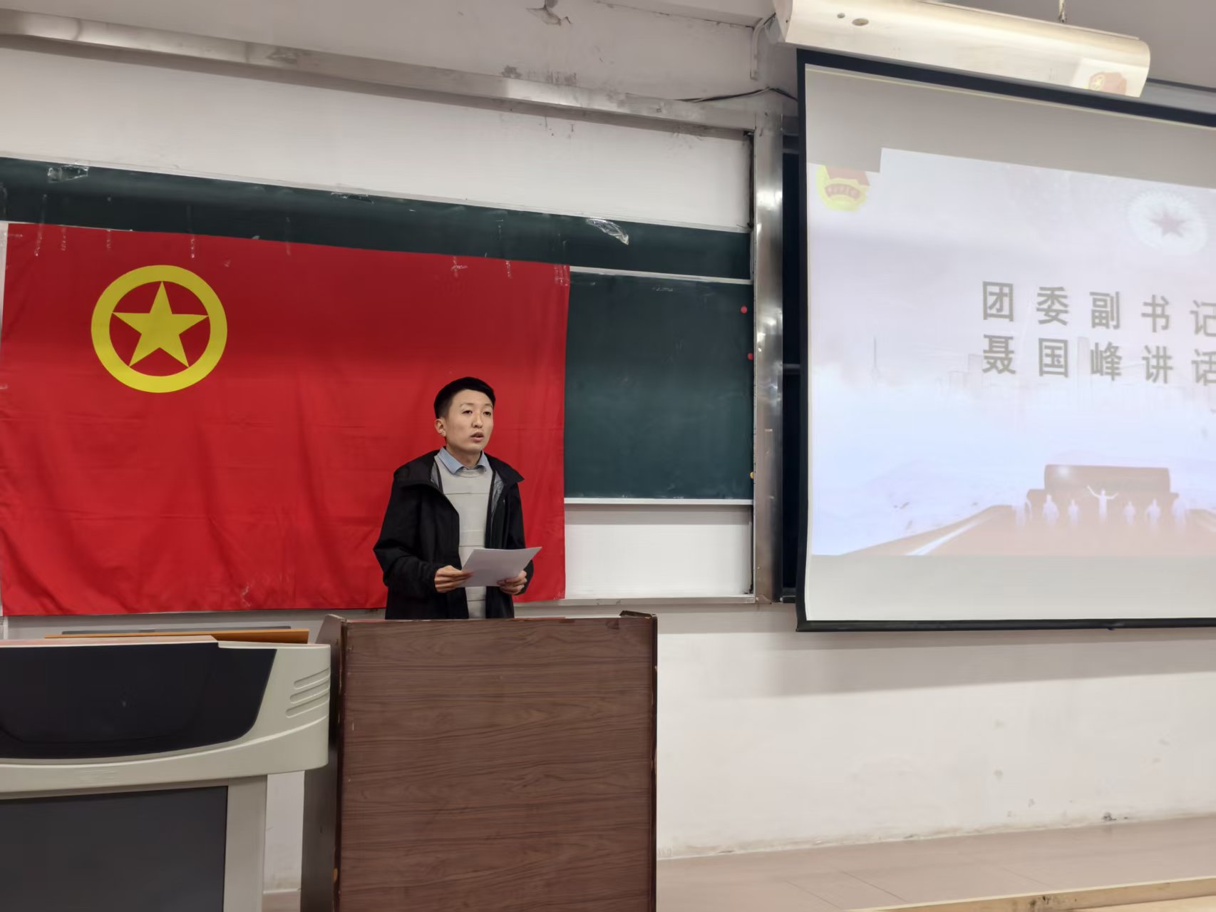 仪式在庄严的国歌声中拉开序幕。聂国峰在演讲中围绕共青团的光辉历史、时代使命与青年担当,向同学们阐述了加入共青团的重要意义,鼓励大家以入团为新的起点,在思想上追求进步,在学习上刻苦钻研,在实践中锤炼品格努力成为有理想、敢担当、能吃苦、肯奋斗的新时代好青年。