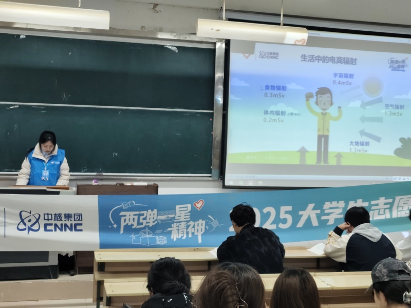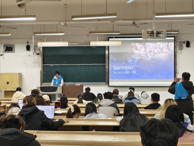 为弘扬“两弹一星”精神,普及核辐射相关知识,经济管理学院红星志愿服务队于11月13日在致远楼512教室举办了以“生活中的核辐射”为主题的宣讲活动,2025级部分学生参与。