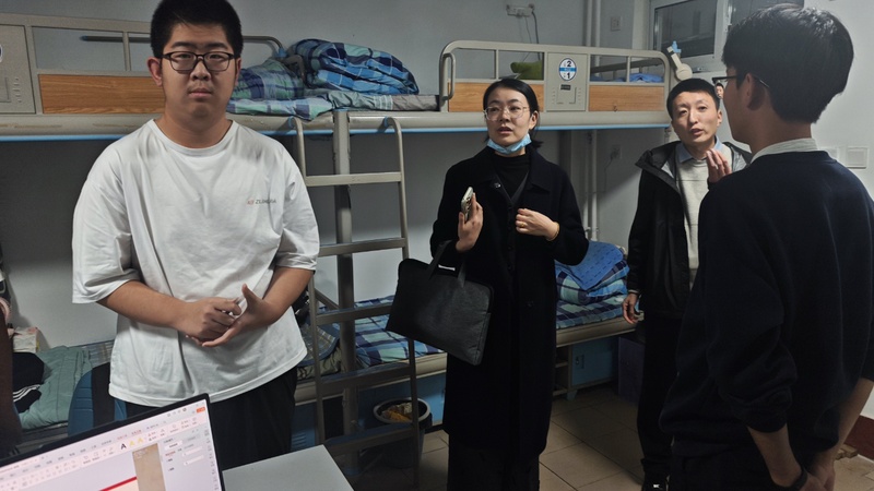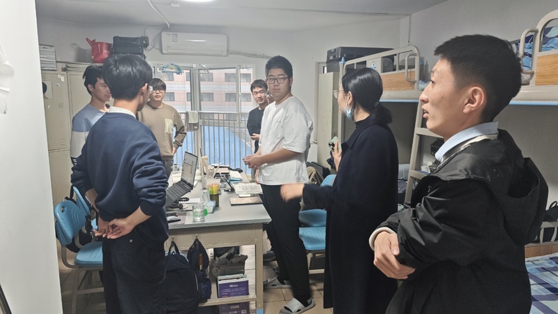 检查过程中,评审团按照卫生整洁度、安全规范落实、文化布置创意、集体凝聚力等维度,细致查看每间宿舍的环境卫生、电路安全、装饰布置及文化展示。各宿舍纷纷亮出“看家本领”,宿舍内整齐的被褥、整洁有序的物品摆放、一尘不染的地面、精致的手工作品等不仅展现了学子们的动手能力,更流露着室友间的深厚情谊。
