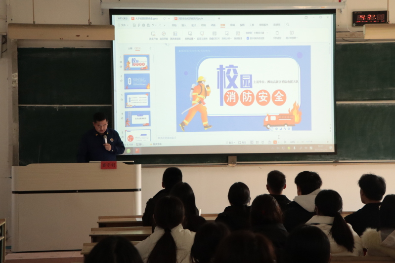为筑牢校园消防安全防线,保障师生生命财产安全,11月20日,经济管理学院举办了消防安全知识宣讲活动。本次宣讲由高新区消防救援大队科长窦守钊主讲,安全保卫处赵崇杰,经济管理学院学生工作办公室主任焦祥嘉、辅导员杜泊明、全体宿舍舍长参会。