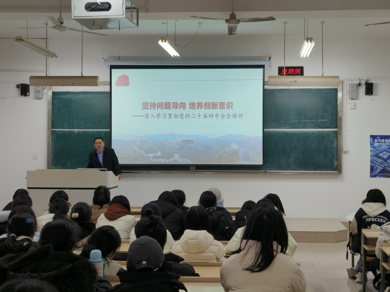 何建鹏以党的二十届四中全会精神为引领,解读“十五五”规划中“创新驱动发展”要义,强调创新是破解发展难题的“第一动力”,号召学子以问题为导向培养创新思维,将个人成长坐标锚定国家发展蓝图。