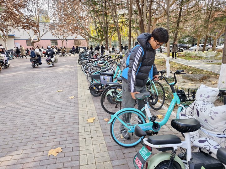 活动期间,志愿者们准时到位,在教学楼院内和院外分别安排人员定点值守。面对前来停车的同学,大家耐心上前引导,告知规范停放要求,协助调整车辆朝向,确保每辆自行车都整齐停入划线区域。对于已经杂乱停放的车辆,队员们分工协作,逐一将其挪至规范位置,使整个停车区域变得整齐有序。