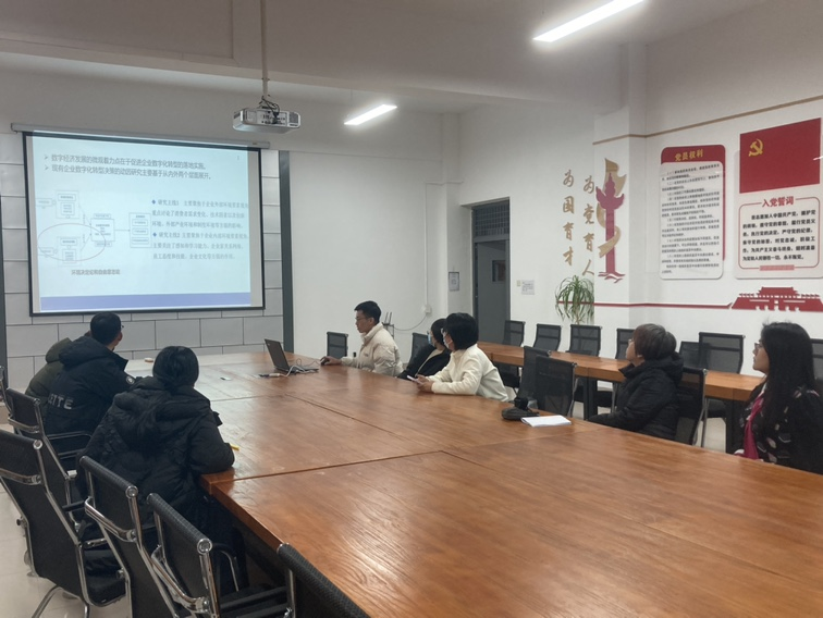 为搭建学术交流平台,促进科研成果分享,激发学术创新活力,2025 年 12 月4 日下午 3 点半,经济管理学院在6409会议室举办博士学术沙龙。本次沙龙由学院院长刘伟主持,单玉坤、侯德恩两位博士分别作专题学术报告,学院教师代表到场聆听交流。