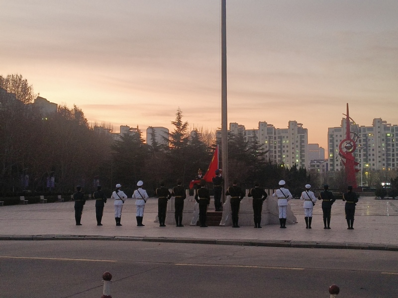六点四十分,师生齐聚,列队整齐。英姿飒爽的国旗护卫队迈着坚定有力的步伐,护卫五星红旗入场。伴随着激昂的《义勇军进行曲》,鲜艳的国旗冉冉升起,迎风飘扬。全体师生肃立行注目礼,现场气氛庄严肃穆,爱国情怀在心中激荡。