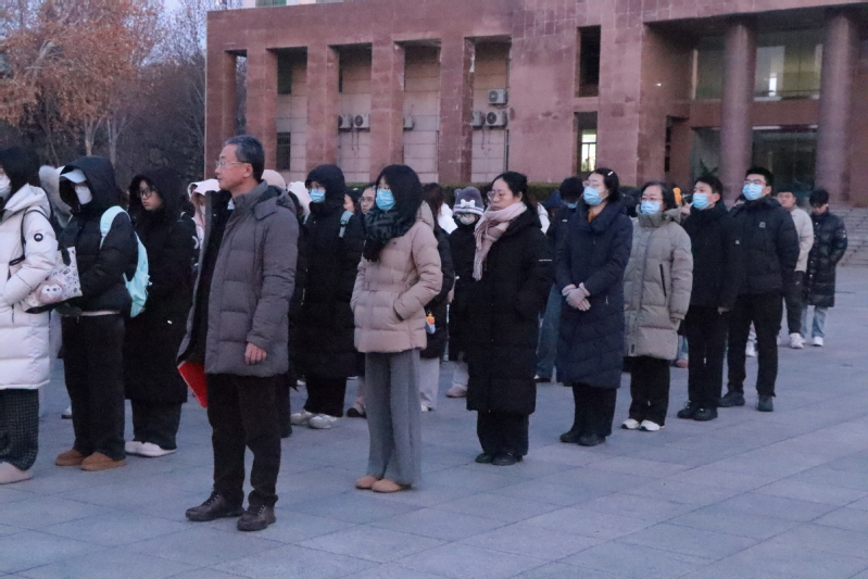12月15日清晨,经济管理学院在学校行政楼前广场隆重举行升旗仪式。经济管理学院党委书记李德吉、学生工作办公室主任焦祥嘉、团委负责人聂国峰,全体辅导员及2024级全体同学共同参加。