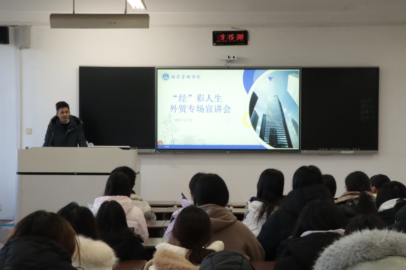 为拓宽经管学子就业渠道、搭建校企对接桥梁,12月26日,由经济管理学院主办,潍坊市商务局协办,四十余家外贸企业走进校园,开展了专场宣讲会与招聘会,现场气氛热烈,求职互动氛围浓厚。