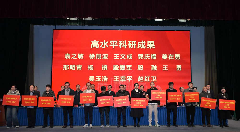 春归启新程,科研绽芳华。3月17日,学校2026年科技人才工作会议隆重召开,全面总结2025年全校科技人才工作成效,部署新一年重点任务,表彰一批在科研创新、人才培养领域表现突出的先进单位和个人。其中,我院四位教师凭借扎实的科研功底、突出的成果贡献荣获表彰:来逢波获山东省社会科学优秀成果奖二等奖,吴玉浩获山东省社会科学优秀成果奖三等奖,邢明青获ESI高被引论文表彰,周志刚获批山东省社科联人文社会科学重大项目。此次表彰充分彰显了我院的科研实力与人才培养成效,为学院高质量发展再添荣光。