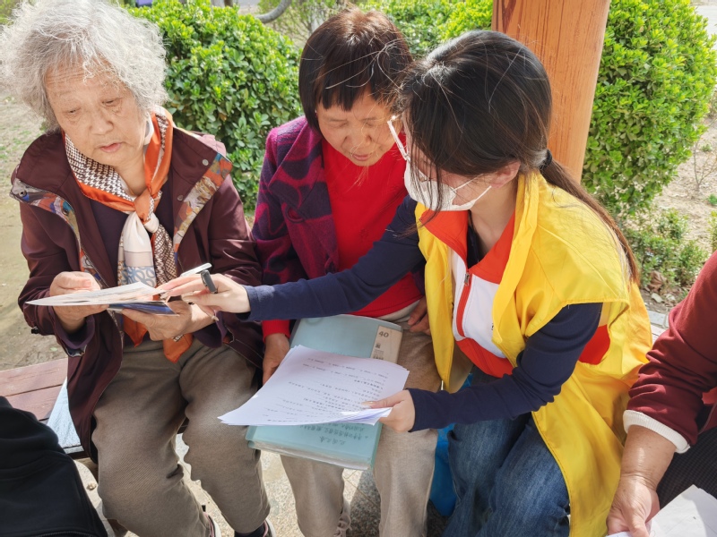 调查过程中,队员们与社区老年人进行一对一交流,耐心说明调研目的,细致讲解问卷内容。面对理解能力较弱或行动不便的老人,队员们放慢语速、逐一解释,认真记录反馈信息。调研期间,队员们举止文明、态度谦和,得到了社区居民的积极配合,现场氛围平稳有序。