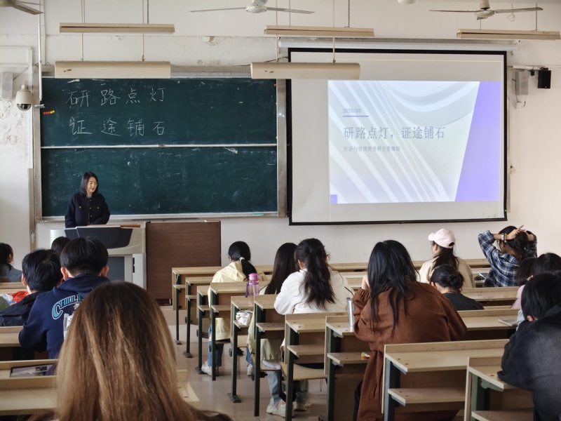 为深入推进学院学风建设,帮助大一学生科学规划大学生涯,明确考研备考与证书考取的核心方向,切实提升学生学业发展竞争力,2026年3月26日,经济管理学院于致远楼512教室成功举办“研路点灯,证途铺石”学风建设月专题讲座。本次活动由学生工作处主办、经济管理学院承办,经济管理学院团委负责人王功贺、学生会相关负责人及全体大一学生参加此次讲座。