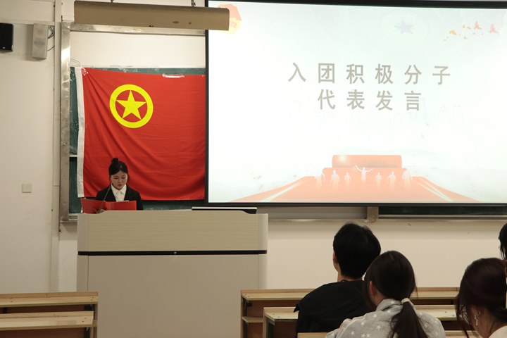 学生代表赵暖洁上台发言,她真诚表达了对加入中国共产主义青年团的热切向往,也作出了坚定的青春承诺。她表示,会珍惜培训机会,认真学习团的理论知识,严格遵守团的各项纪律,在学习生活中以身作则、严于律己,用实际行动践行初心,争取早日成为一名合格的共青团员。
