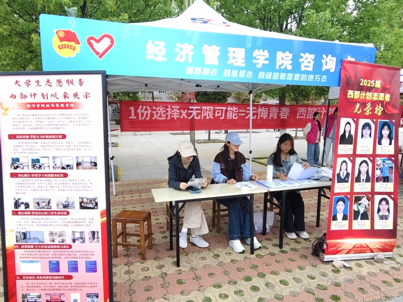 为深入落实大学生志愿服务西部计划的招募工作部署,潍坊学院于4月16日在图书馆南广场举办西部计划嘉年华活动。经济管理学院积极参与,并以此为契机,进一步推进西部计划的招募与宣传工作。
